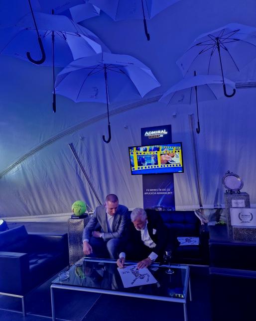 Valentin-Adrian Georgescu: Momentul cu Ilie Năstase și „umbrela albă” a devenit un simbol viral în lumea tenisului mondial. În 1974, la Wimbledon, Năstase a folosit o umbrelă împrumutată de la un spectator pentru a se proteja de ploaie – un gest neobișnuit, care a contribuit la consolidarea imaginii sale de „rebel al tenisului”. Ca un adevărat showman, s-a uitat în jur, iar apoi un spectator i-a întins o umbrelă, pe care el a ținut-o în timp ce se pregătea să reia jocul. Pentru a reaminti și a marca acest moment unic, am recreat simbolul umbrelei albe și am amenajat un corner special, unde invitații au putut face poze, au interacționat și au primit autografe.